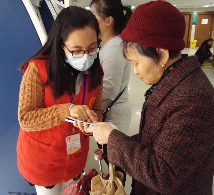 志愿者日志44 文章來源:門診部 作者: 點擊數(shù):8268 更新時間:2015-12-18 2015.年12月13日???? 星期日 ??? 周淑瑩、張?zhí)鹛?、葉玲榮、周淑華等4人在衢州市人民醫(yī)院做志愿者。志愿者們主要在門診大廳一樓至五樓接受患者咨詢、引導自助服務(wù)機使用方法、流動服務(wù)、幫助身體虛弱及身心障礙者等提供引導、協(xié)助門診大廳工作人員疏導病人。 ? 上一篇: 衢州市人民醫(yī)院愛心服務(wù)中心(試行) 下一篇: 在市人民醫(yī)院感受真情------一位志愿者在醫(yī)院服務(wù)感言