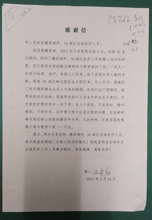 感謝信(致內(nèi)分泌科、呼吸內(nèi)科) 文章來(lái)源: 作者: 點(diǎn)擊數(shù):7040 更新時(shí)間:2015-02-24 上一篇: 感謝信 下一篇: 感謝信(致余俊華醫(yī)生)
