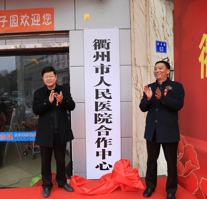 ??? 市衛(wèi)計(jì)委黨委委員張福俊和我院院長(zhǎng)陳震宏共同為“衢州市人民醫(yī)院合作中心”揭牌。