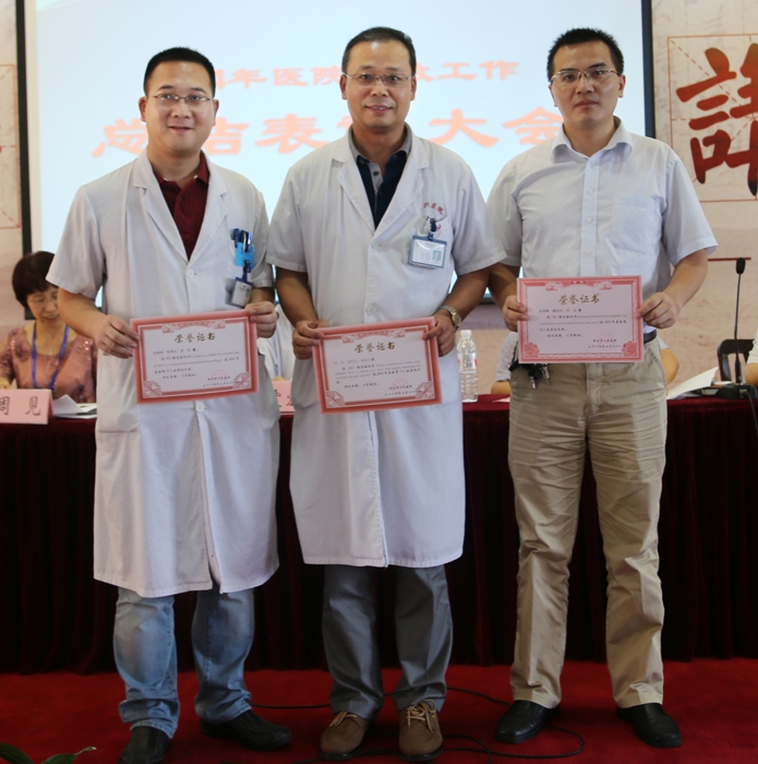 ??? 7月29日下午,我院2014年科教工作總結(jié)表彰大會在五樓學(xué)術(shù)報告廳召開,對在醫(yī)院科教工作中做出突出成績的醫(yī)務(wù)人員進(jìn)行了表彰。黨委副書記、紀(jì)委書記吳善水宣讀表彰文件,院領(lǐng)導(dǎo)為科、教、研獲獎個人和集體頒發(fā)了榮譽證書。院領(lǐng)導(dǎo)班子、班組長以上干部、三級醫(yī)師、護(hù)理責(zé)任組長等200余人參加了會議。