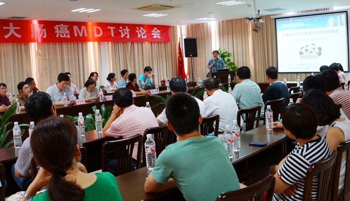 ??? 會上,陳院長對浙二醫(yī)院腫瘤中心MDT團(tuán)隊的到來表示了熱烈歡迎。張?zhí)K展教授介紹了浙二醫(yī)院直腸癌MDT團(tuán)隊建設(shè)的過程,袁瑛教授作2014ASCO直腸癌亮點(diǎn)的專題講座。隨后,浙二醫(yī)院和我院共提供了5份病例,我院腫瘤外科、腫瘤內(nèi)科、放療科、肝膽外科、病理科、放射影像科等多科的代表針對患者均發(fā)表了各自的看法。經(jīng)過熱烈的討論后,浙二醫(yī)院腫瘤中心MDT團(tuán)隊的專家進(jìn)行了總結(jié),為患者制定了規(guī)范化、綜合化、個體化的診療方案。
