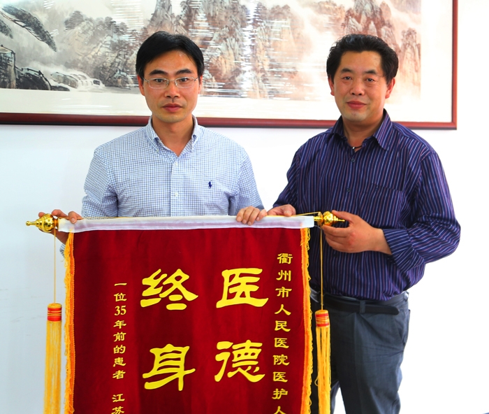 ??? 院黨委書記徐天才說,“救死扶傷、做好服務(wù)是醫(yī)院始終堅(jiān)持的宗旨,翟先生輾轉(zhuǎn)千里尋找35年前的恩人,并給我們送來錦旗,是對(duì)我們醫(yī)療服務(wù)最大的肯定與鼓勵(lì)?!贬槍?duì)近來來由于醫(yī)患關(guān)系緊張引發(fā)的事件,他說,我們廣大醫(yī)務(wù)人員只要始終堅(jiān)持患者至上的服務(wù)宗旨,就會(huì)得到患者的認(rèn)可,社會(huì)的尊重。