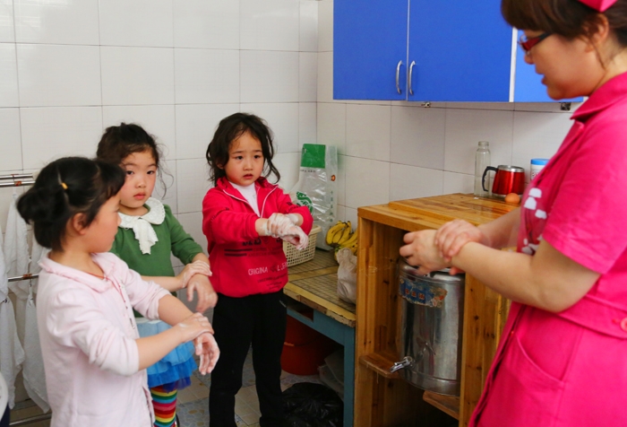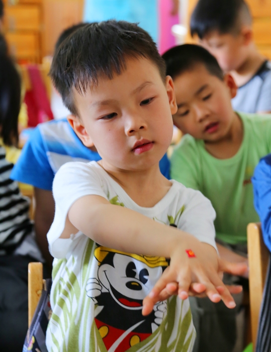 ??? 志愿者們還一對一的給孩子們進行“六步洗手法”的示范演練,鞏固了六步洗手法的要領(lǐng),教他們學(xué)做“健康十指操”:“掌心相對,手指并攏,搓搓搓;手心對手背,十指交叉,搓搓搓……”孩子們邊念步驟邊練習,很快就掌握了六步洗手法。