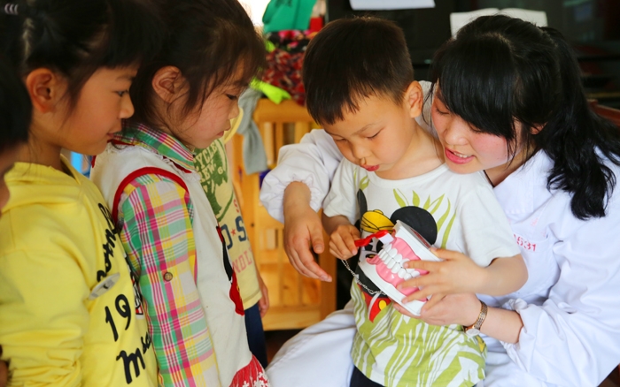 ?? “小朋友,你們知道自己有多少顆牙齒嗎?知道我們平時該如何保護它們嗎?”,“你們知道什么是正確的刷牙方法嗎?”,“刷牙要刷多長時間最為適宜嗎?” 口腔專科護士陳潔做“如何預(yù)防齲齒”的講座,生動形象地普及了口腔保健及齲齒預(yù)防的知識。通過理論授課及牙型模具示范,使孩子們了解了牙齒分類、在日常生活愛護牙齒的重要性、正確刷牙的方法。