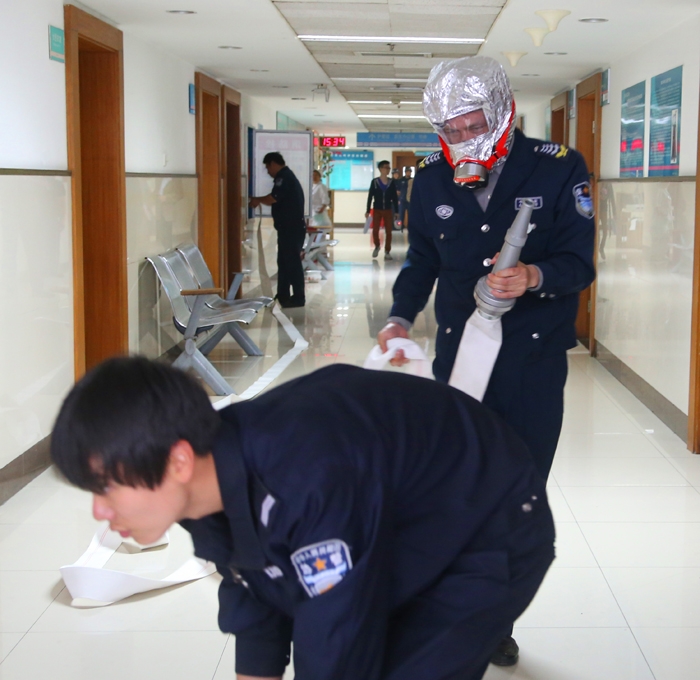 ??? 我院消防組、滅火組、救護(hù)組、疏散組、宣教組等,在火災(zāi)發(fā)生后第一時(shí)間接到指揮命令,各司其職,井然有序,“火情”很快得到控制,被困人員迅速得到解救。
