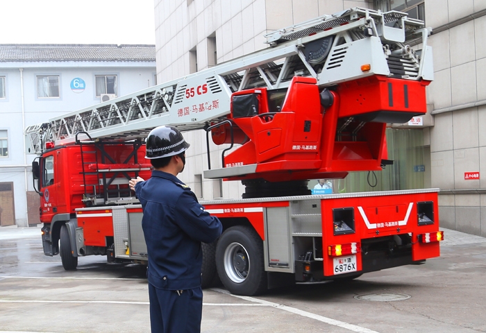 保安引導(dǎo)消防車進(jìn)入指定區(qū)域