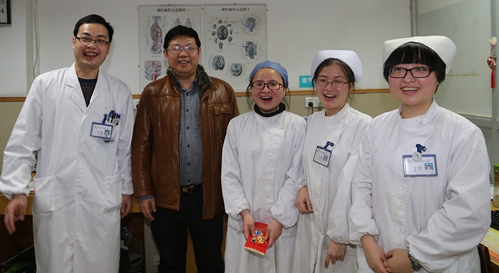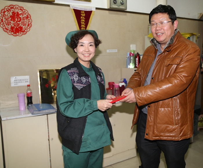 ?????每到一處,院領(lǐng)導(dǎo)都親切地與值班人員握手, 向各位在春節(jié)期間仍堅(jiān)持在崗位上的職工致以新春佳節(jié)的美好祝愿,并對(duì)他們“顧大家舍小家”的奉獻(xiàn)精神以及為維護(hù)醫(yī)院節(jié)日期間的正常秩序所作的努力和貢獻(xiàn)表示真誠(chéng)的感謝。??????
