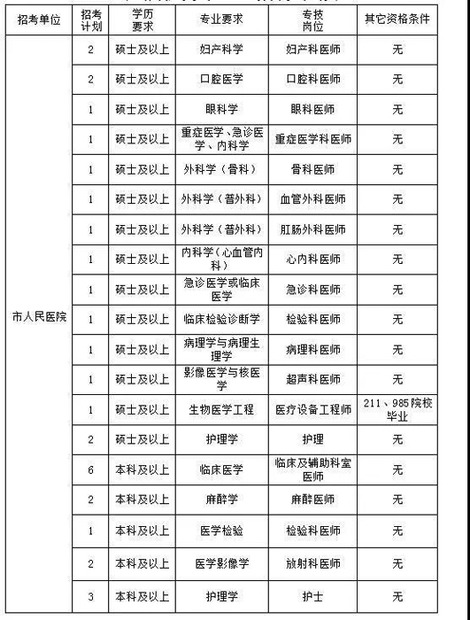 用人單位根據(jù)報考者提供的資料進行資格審查,并根據(jù)報考者提供的資料按崗位招聘計劃不低于按1:3比例確定參加筆試人員,緊缺崗位(如麻醉醫(yī)生、放射醫(yī)生、兒科醫(yī)生崗位)按1:2比例確定參加面試人員。招考計劃與報名人數(shù)不足開考比例的崗位,招考計劃將相應(yīng)核減。