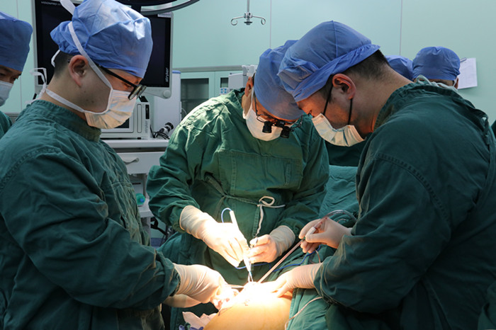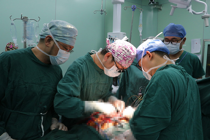 1月14日上午,王玨協(xié)同心胸外科周珉主任,帶領(lǐng)手術(shù)團(tuán)隊(duì)為梁先生行全麻下 “補(bǔ)心”手術(shù)。