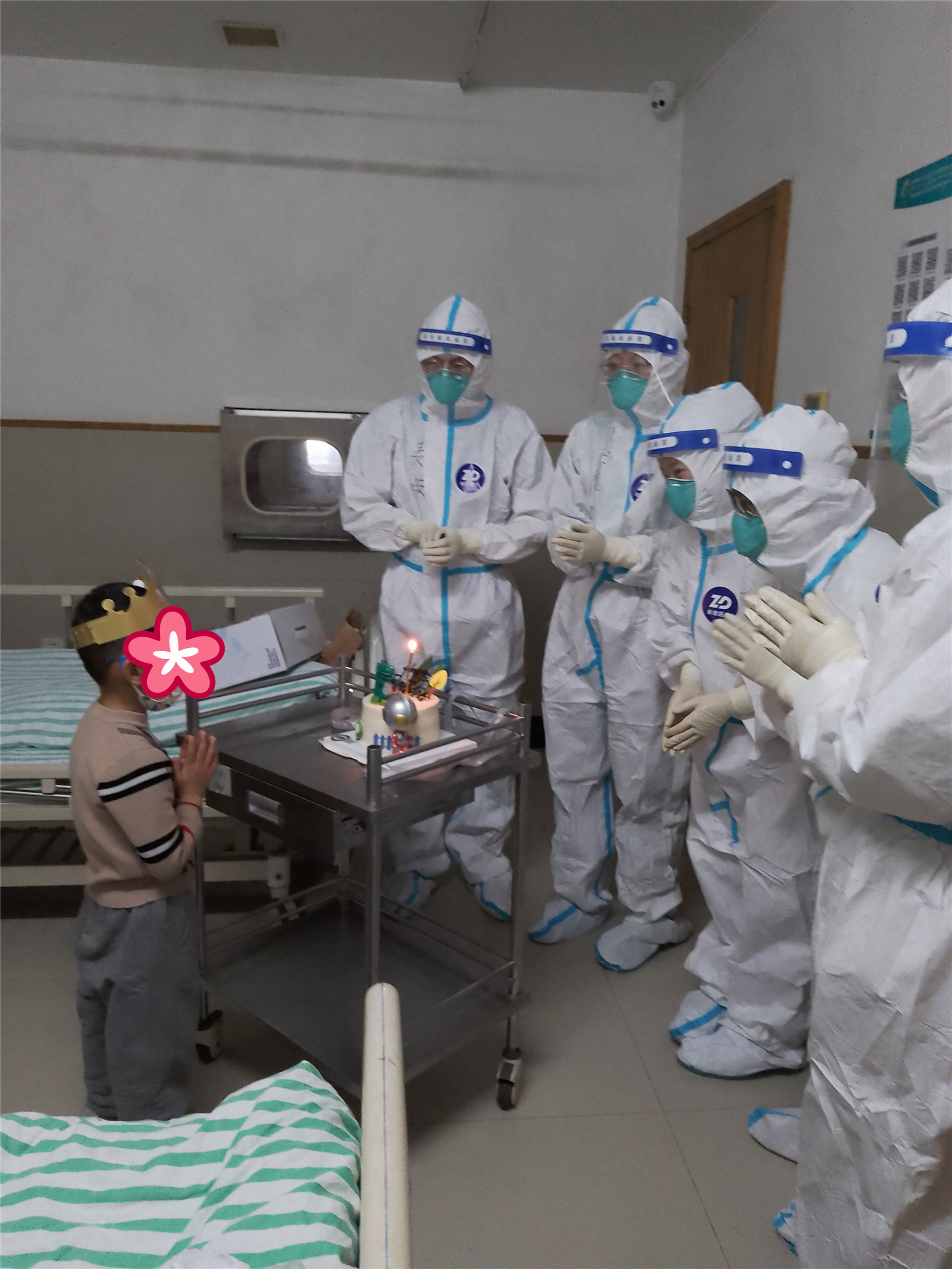 “即使隔著防護(hù)服和面屏,我們依然能感覺到,這個(gè)生日驚喜,讓他很開心?!?