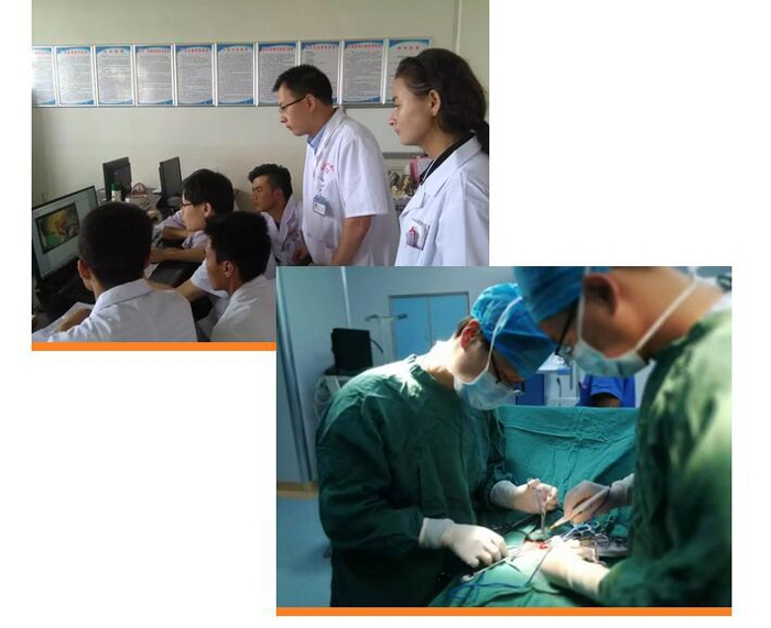 ??? 被親切的稱為“無影燈下的手術神”的胃腸外科樊建平副主任醫(yī)師開展了外科手術及手術指導,先后共完成12臺手術,分別涉及小兒疝修補術、成人疝修補術、腹腔鏡膽囊切除術、混合痔切除(PPH)術等手術,還開展了一例較罕見病“藏毛竇”手術(藏毛竇是尾骶部反復流膿的一種疾病,常導致褲子濕潤,影響生活質量),并予“轉移皮瓣”做了細致指導。樊主任笑稱“如果不是全科,還難以應付”,在手術間隙,還給當?shù)赝聜冏隽艘?guī)范的演示、專業(yè)授課及三級查房等。