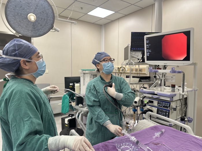 入住呼吸重癥監(jiān)護(hù)室(RICU)后,主管醫(yī)師方劍對(duì)吳爺爺?shù)牟∏檫M(jìn)行充分評(píng)估,并申請(qǐng)了科內(nèi)會(huì)診,科室討論決策,由呼吸與危重癥醫(yī)學(xué)科主任金旭如領(lǐng)銜的呼吸介入團(tuán)隊(duì)為吳爺爺施行支氣管鏡下介入治療。