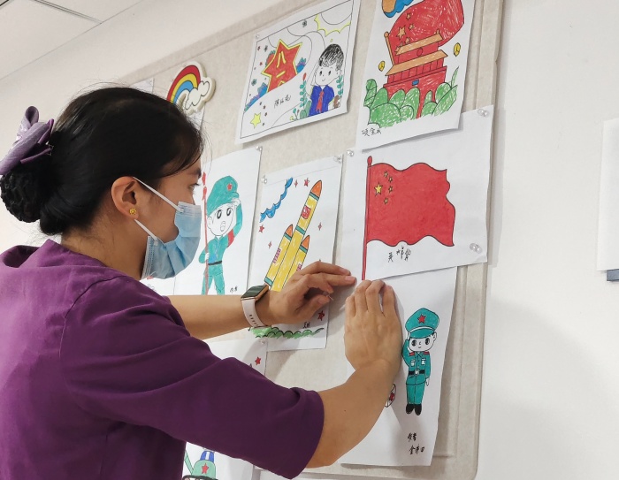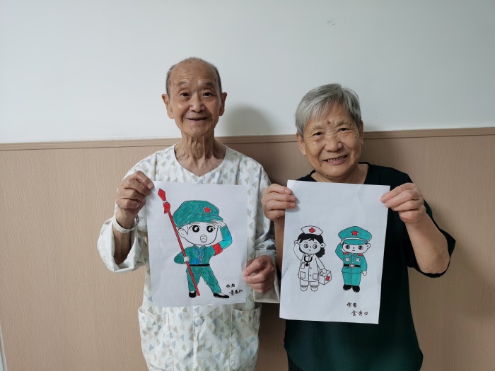 活動(dòng)還設(shè)置了創(chuàng)意涂鴉環(huán)節(jié),老兵們?cè)卺t(yī)護(hù)人員的陪伴下,用五顏六色的畫筆描繪出他們心中的國旗、天安門、軍人還有鮮花等等,用另一種方式慶祝自己的節(jié)日,表達(dá)對(duì)軍旅生涯的懷念和對(duì)當(dāng)下生活的熱愛。